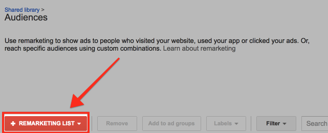 To do that, click on Re-marketing List,’ which can be found in the Shared library section.
