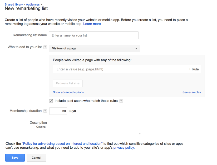 Make sure that you give your Re-marketing list a specific name, so that you can quickly identify what the purpose of the list is, when you go back to check on your campaigns.