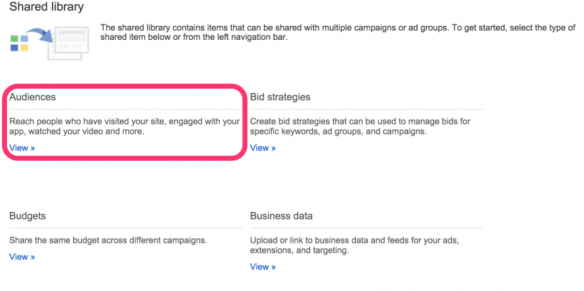 After logging into your Google AdWords account, click the ‘Shared Library’ link in the lower left navigation bar.